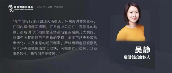 吴静女士梳理了疫情复苏后的几大利好,例如政府对自主创新的支持、资本市场开放化以及全球的超低利率红利。她指出,医疗,芯片,企业服务软件和新兴消费渠道都是2020年的热点板块。