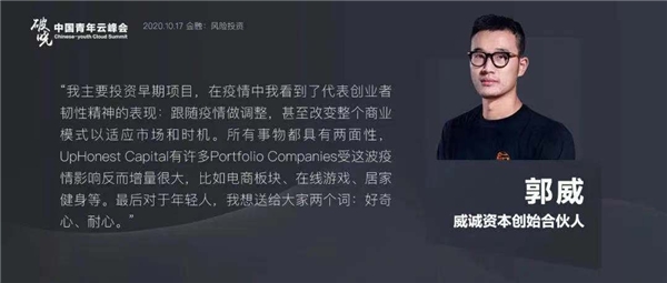 郭威先生以电商板块、在线游戏和远程办公为例,指出部分行业因疫情影响收获了许多增量。他提到那些能够及时随疫情做调整的创业者,赞扬他们改变商业模式以顺应市场和时机的韧性精神。