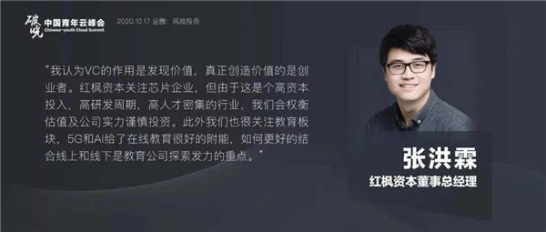 张洪霖先生认为,创投的核心是发现价值,投资人要寻找能真正创造价值的创业者。在此之后,他对芯片企业和在线教育板块投资分享了洞见。