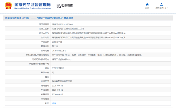 而贝贝乐PBM-LED近视治疗仪从2022年开始研发,注册申报以来经多次审核,最终经过严格审批下拿到注册证,成为新规落地后首个通过二类医疗器械注册(注册证编号:琼械注准20252160084)的LED红光产品,从根源上解决合作伙伴“合规经营”的顾虑,让您安心布局。