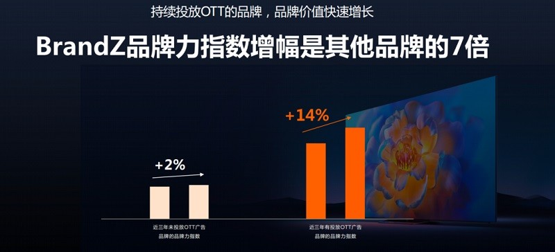 此外,凯度还发现,持续投放OTT的品牌,品牌价值快速增长,BrandZ品牌力指数增幅是其他品牌的7倍。凯度的数据还是很有说服力的,其隶属于全球传播巨鳄WPP集团的凯度成立于1993年,是全球最大的数据、调研和咨询机构。