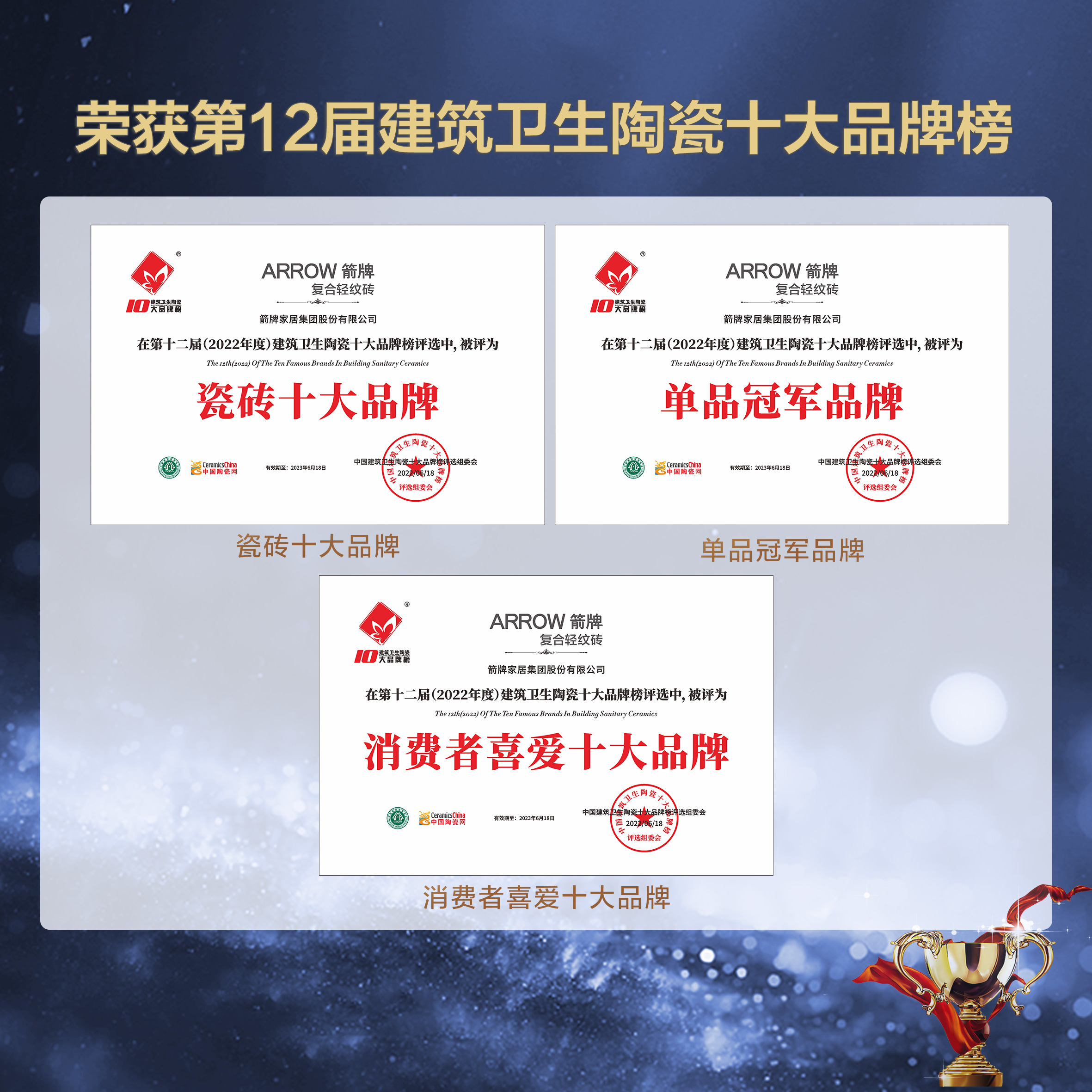箭牌复合轻纹转产品喜获多项荣誉(可左右滑动)