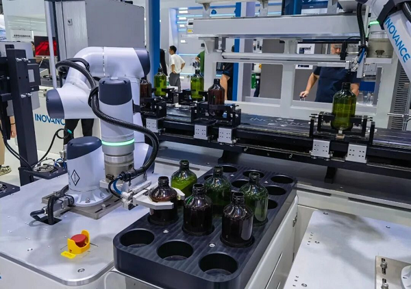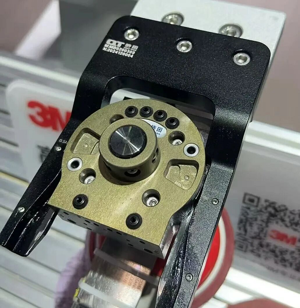 在汇川技术智能机器人生态展示区,覆盖关节执行器的七自由度仿生臂上搭载与桥田联合开发的无动力换枪盘,确保在工具切换时信号、气体等能源的稳定传输。