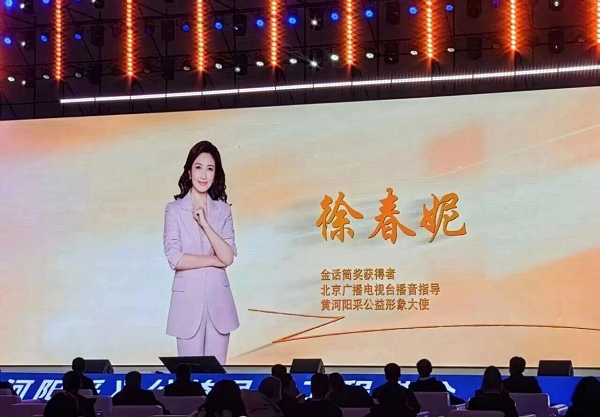 (北京广播电视台播音指导 徐春妮现场对黄河阳采公益品牌工程进行推介)