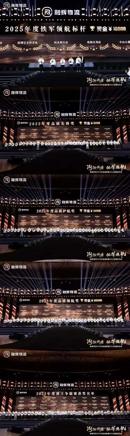 当晚,融辉重磅揭晓“品质先锋奖”“品质护航奖”“品质领航奖”三项品质服务大奖。特设500万品质服务特别大奖,既是对2025年末端服务坚守者的答谢,更是对2026年所有网点的激励——做好品质,就有奖励!同时,“铁军标杆领航奖”和“货量王奖项”也一并揭晓,致敬每一位奋斗者!