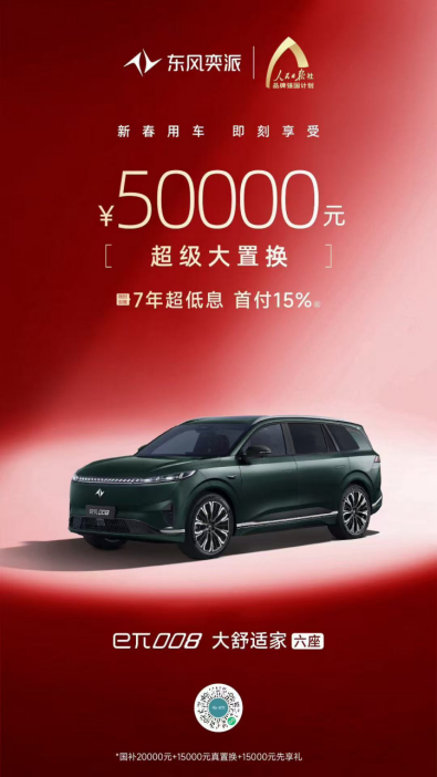 除了产品实力,更让我震惊的还有eπ008的销售政策,现在购买奕派008能享受涵盖国补+置换+先享礼的5万元超级大置换,首付仅需15%,算下来只要2万多块钱,就能把这样一台大六座SUV来回家,可以说是非常具有性价比的选择,想起家里有一位二胎亲戚说一直想换一台大六座SUV,我就跟他推荐了了奕派008这款车,争取在年前,就把新车开回去,新年开新车,完美过大年。