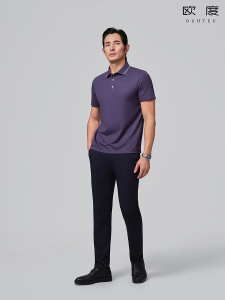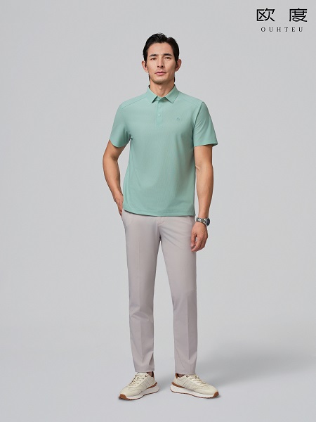 春夏穿衣,轻盈透气的面料是关键。本季,欧度在面料上下足了功夫。商务风格的大部分成衣保留了绵羊毛的温润质感,通过混纺技术赋予了春夏所需的轻盈透气。49.2%羊毛含量的Polo衫,既有羊毛的天然垂坠与高级光泽,又在触感上告别了传统的厚重闷热。