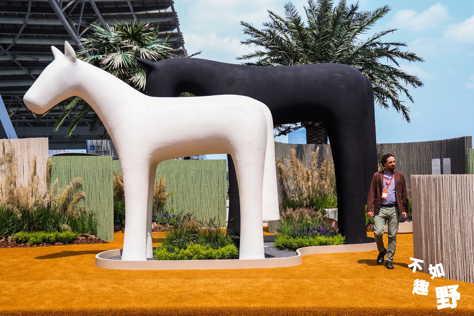 12.1馆内矗立的金色大树,以挺拔的姿态呼应向上生长的力量;AB区中平台的两匹大马,则象征着自由奔跑的生命张力。观众穿行其间,在匆忙中找回属于自己的节奏。