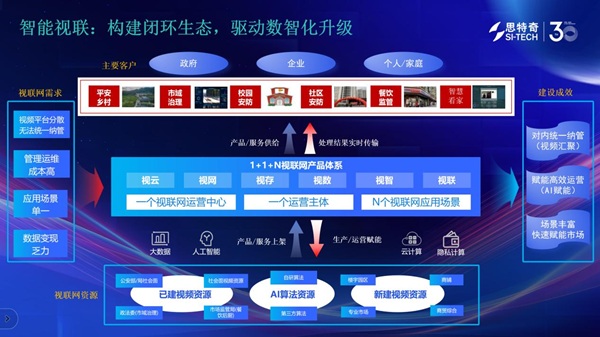 面向广电视联网运营中平台分散、运维成本高、场景单一、数据价值难以释放等痛点,思特奇以AI生态为技术支撑,打造“1+1+N”智能视联解决方案,精准破解行业难题,助力视联网业务提质增效、价值跃升。